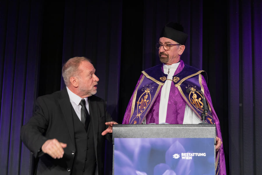 über eine Trauerfeier, die völlig aus dem Ruder gerät.